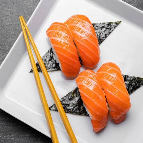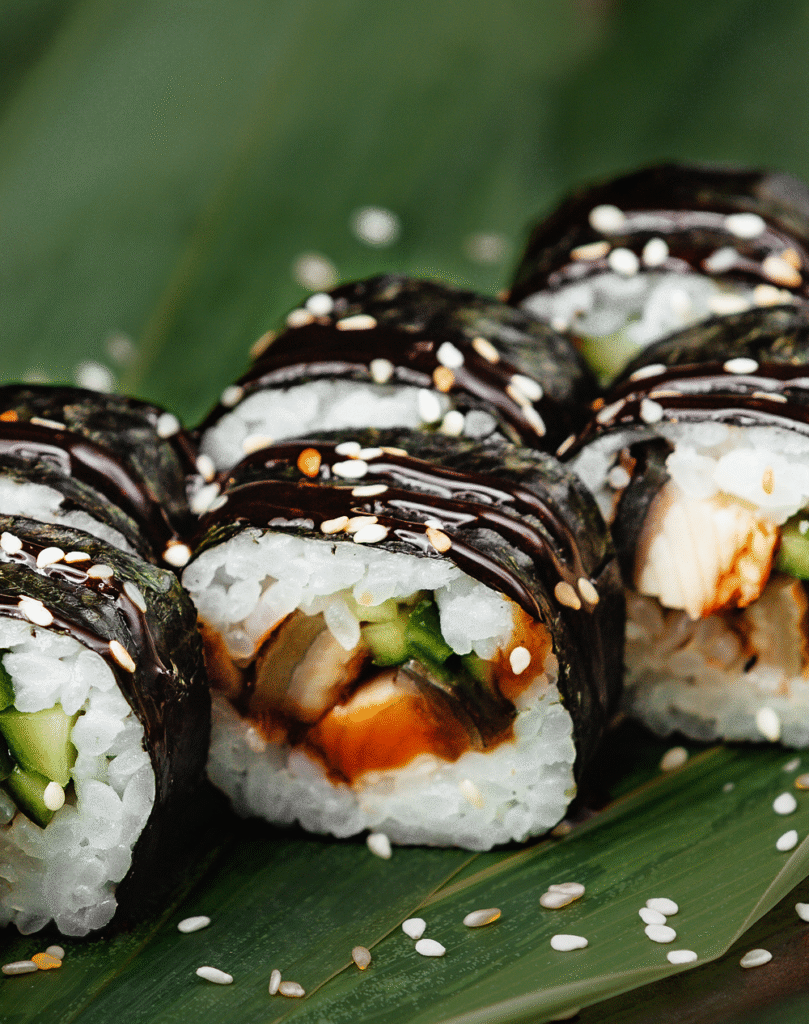 Vegetales en tempura, queso crema, tomate seco, quinoa crocante, teriyaki.