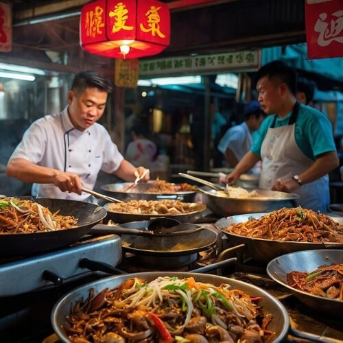 Pollo Karague,mix de lechugas,cebolla crispy, cherry flambeado, salsa pollería.